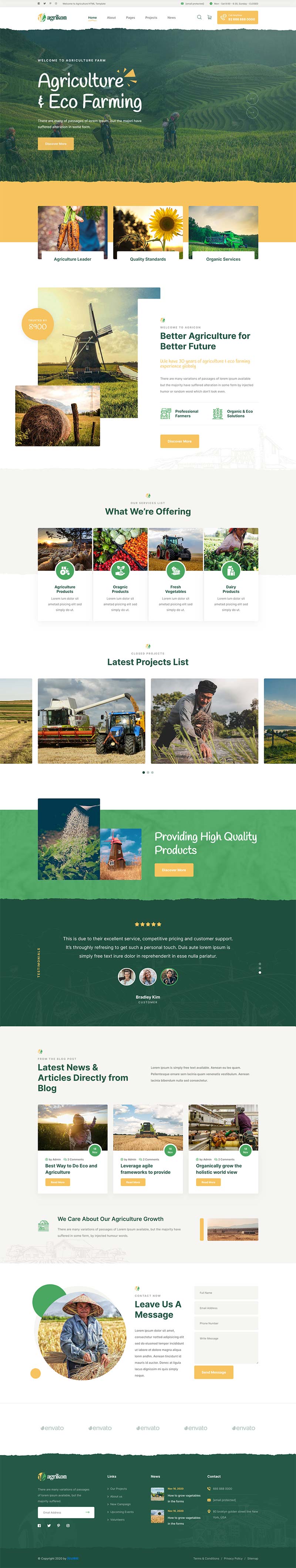 一款创意大气的有机食品、农业生产、畜牧业、有机农业、植物生物技术、家禽、园艺、园林绿化服务,农业行业bootstrap网站模板。