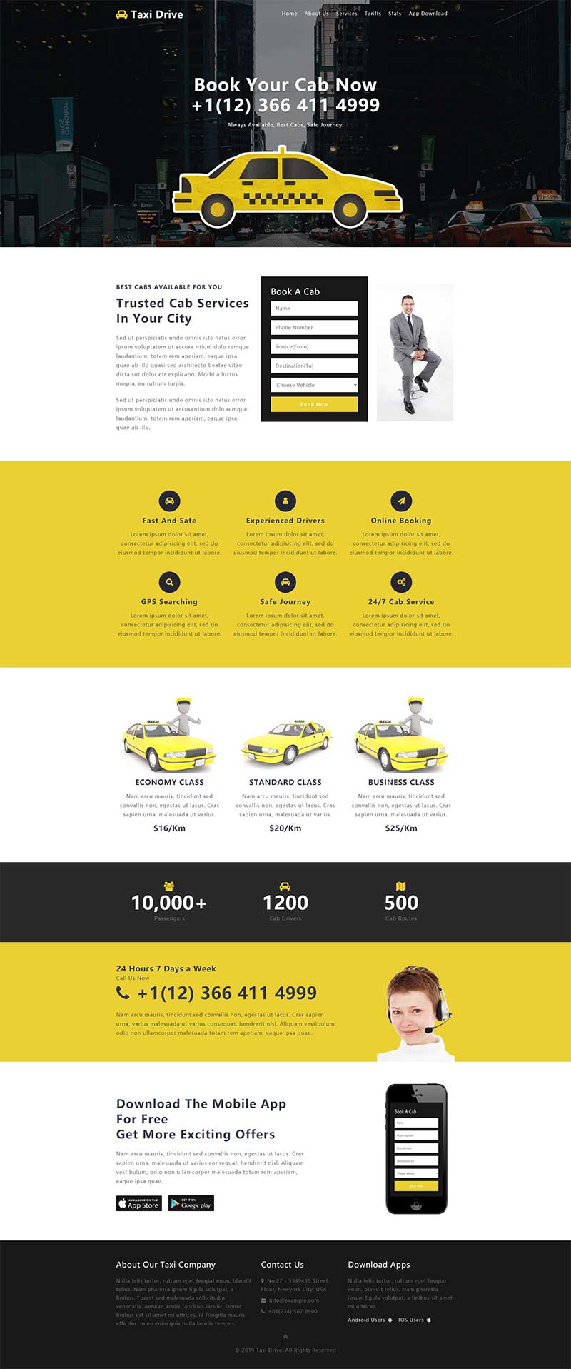懒得驾车或无法驾车时,出租车是我们出行选择的便利服务,那么出租车服务网站该怎么设计呢?小编为您准备了这款黄色出租车服务网站html响应式模板,适合任何打车平台、出租车公司、出行服务等。