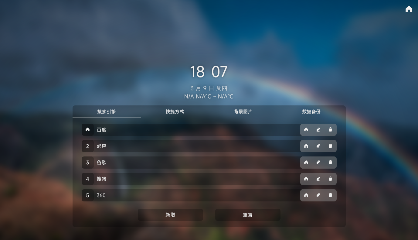 简单的导航起始页开源源码(导航页面设计代码),支持自定义搜索引擎,自定义快捷方式,自定义壁纸以及数据备件,全开源下载就能用。