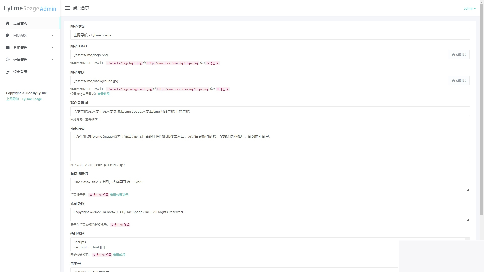 精美PHP导航网源码 导航收录网站,技术导航,QQ技术导航,网站导航,站长导航网源码,网站目录源码 六零导航页(LyLme Spage)前端基于D.Young的 5IUX搜索 ,后台使用笔下光年的Light Year Admin模板开发,包含多种搜索引擎,致力于简洁高效无广告的上网导航和搜索入口,沉淀最具价值链接,全站无商业推广,简约而不简单! 源代码是开源的。