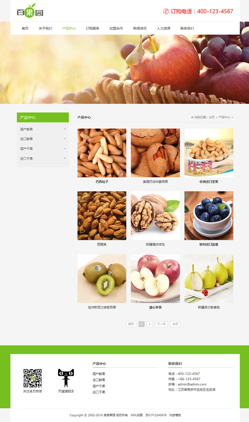 3、适用于果园水果织梦模板、农产品网站源码;