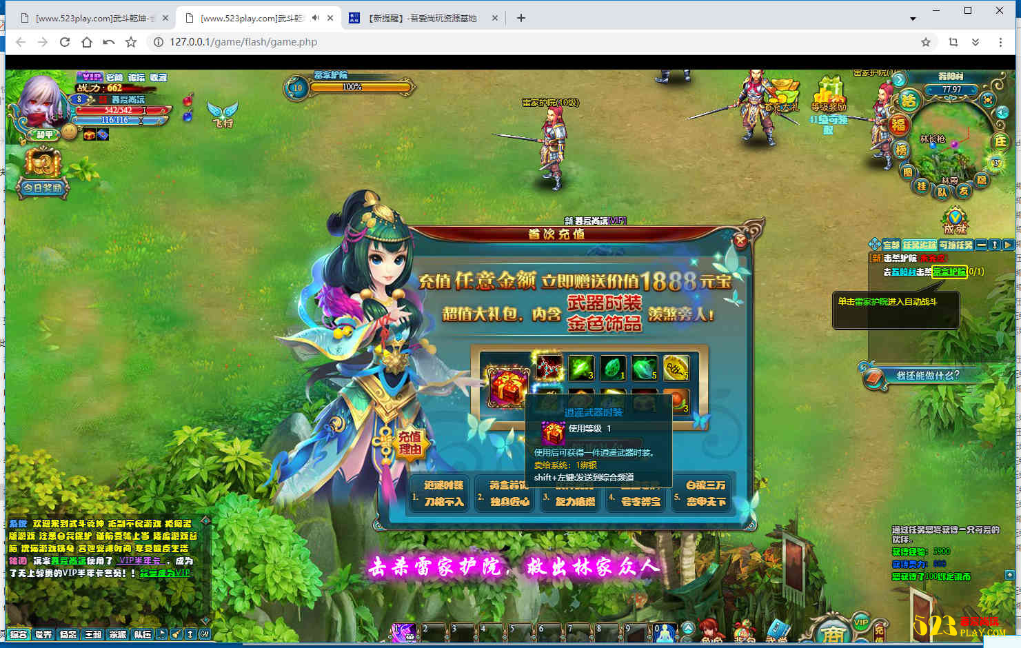 4、修改完保存,网页领取,重新登录即可。其他修改请自行研究下数据库表。