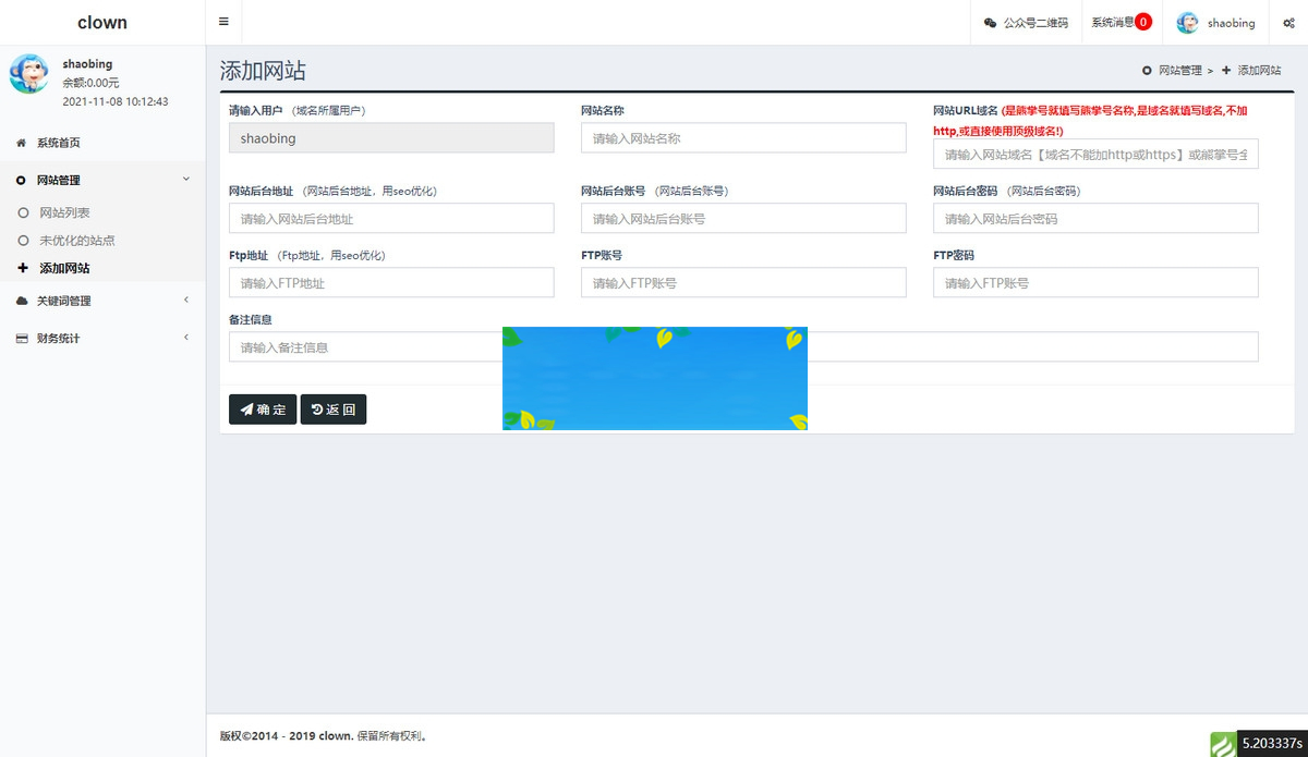 2.网站办理。总站、署理、一般用户均可增加网站,在网站列表页能够看见网站的基本信息,如:域名、网站称号、所属会员、注册时刻、关键词数量、合格关键词数量、今天消费、前史消费及网站启用与禁用状况;