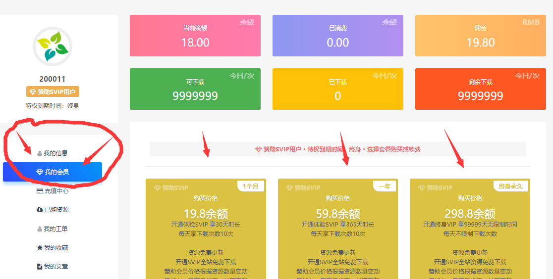 正文概述 第一步: 点击首页【注册/登录】按钮,进行注册账号,如下图 第二步:登陆后点击【头像名称】进入个人中心,如下图 第三步:进入个人中心后,左侧栏点击【我的会员】,如下图 开通步骤与流程到这里结束,可根据自身需求选择对应的类型 有其它疑问或者需要了解的,可以点网站右侧栏联系在线客服 添加搜索客服QQ:190771179进行咨询